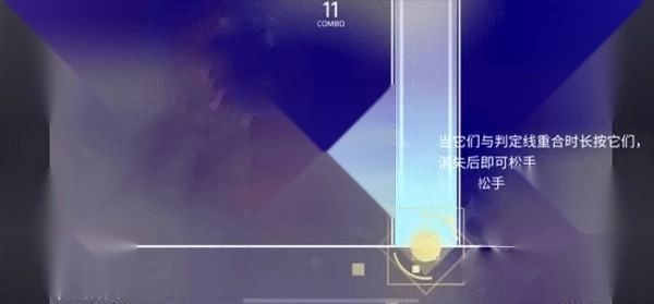 接下来要处理的是Hold音符,当这些音符和判定线重合的时候,你需要长按它们,等音符消失之后再松开手就可以了。