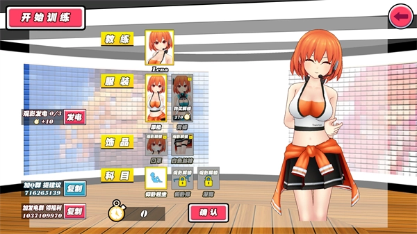 玩家在开启训练前能挑选教练的形象,选定之后就可以点击开始训练了!