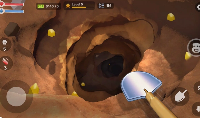 玩家在游戏中化身为矿工或寻宝人,核心目标是持续向地层深处挖掘。