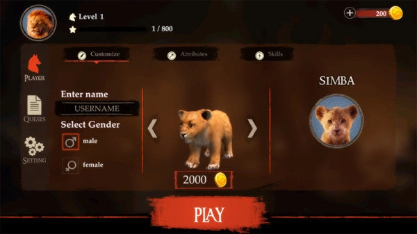 打开启动界面,点击PLAY按钮,就能进入狮子模拟游戏世界,再点击对应的按钮,即可进入模拟世界的游戏环节。