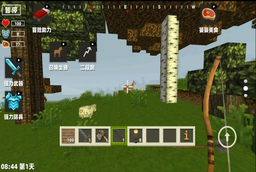 实时冒险战斗玩法:需要同时管理角色的饥饿度与健康状态,游戏提供了多种强力武器供玩家挑选,战斗过程实时展开,玩家能自由召唤这些武器,开启一段充满乐趣的冒险之旅。