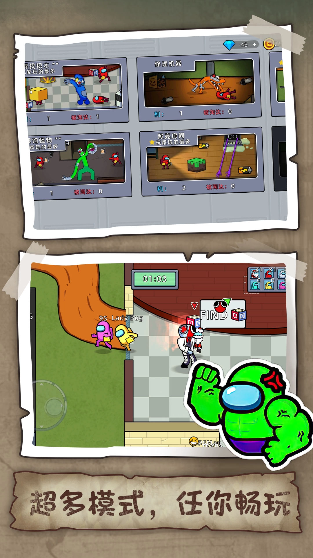 游戏里有着别具一格的潜行玩法:你得时刻绷紧神经,借助周围环境悄悄行动,躲开彩虹怪物的追击,好为自己多争取些活下去的机会。