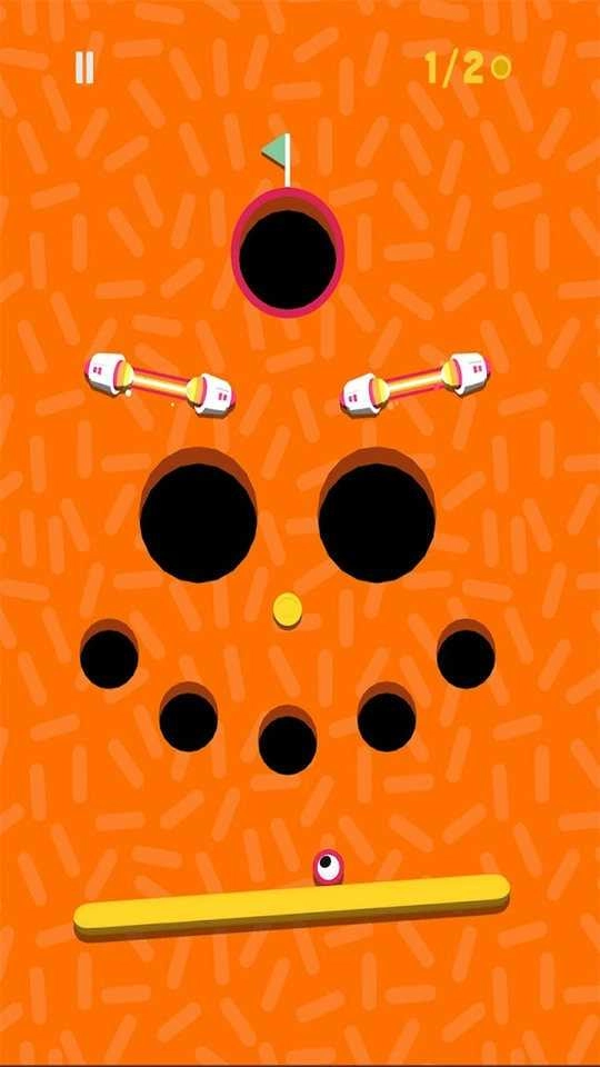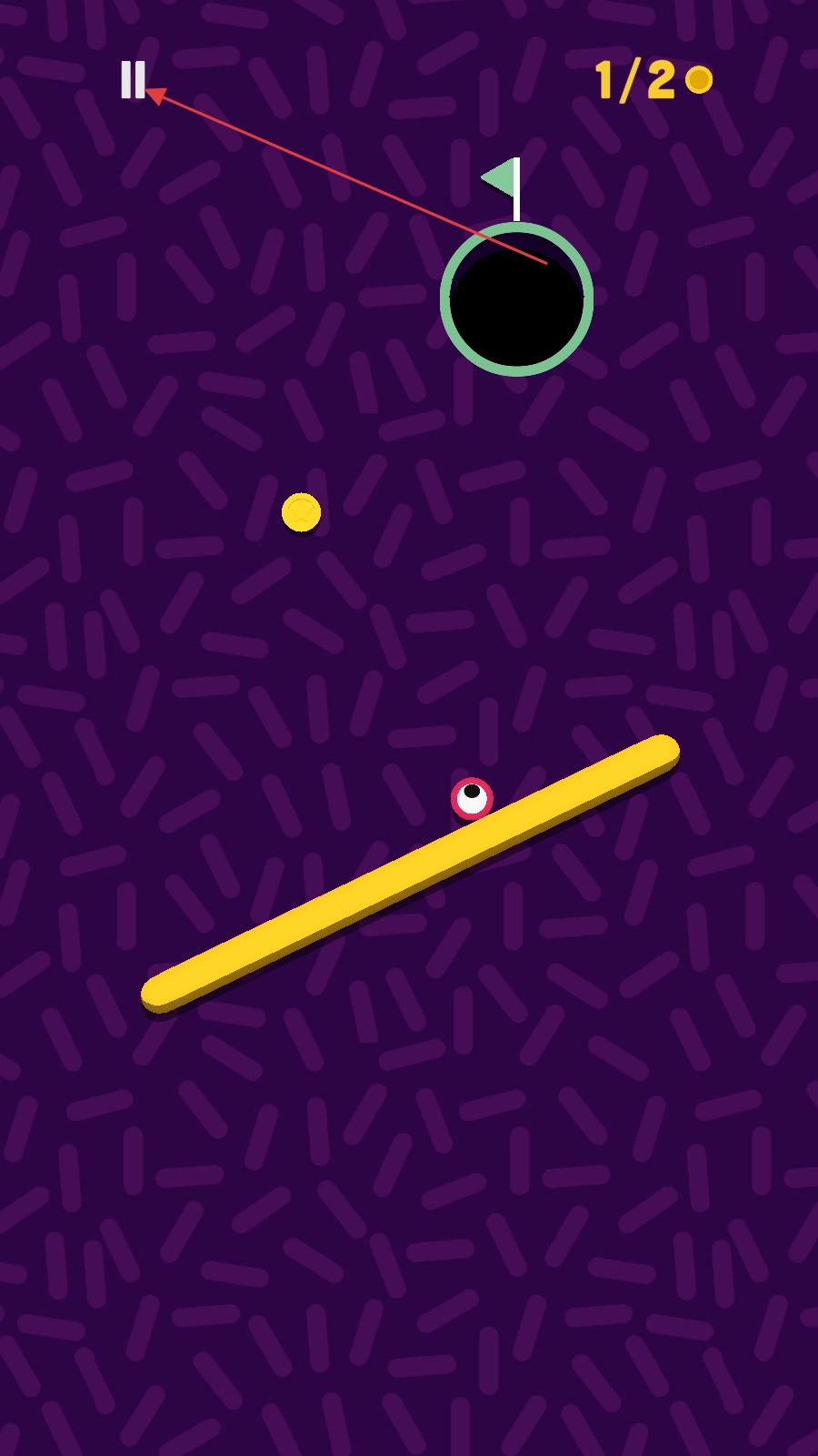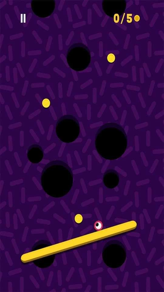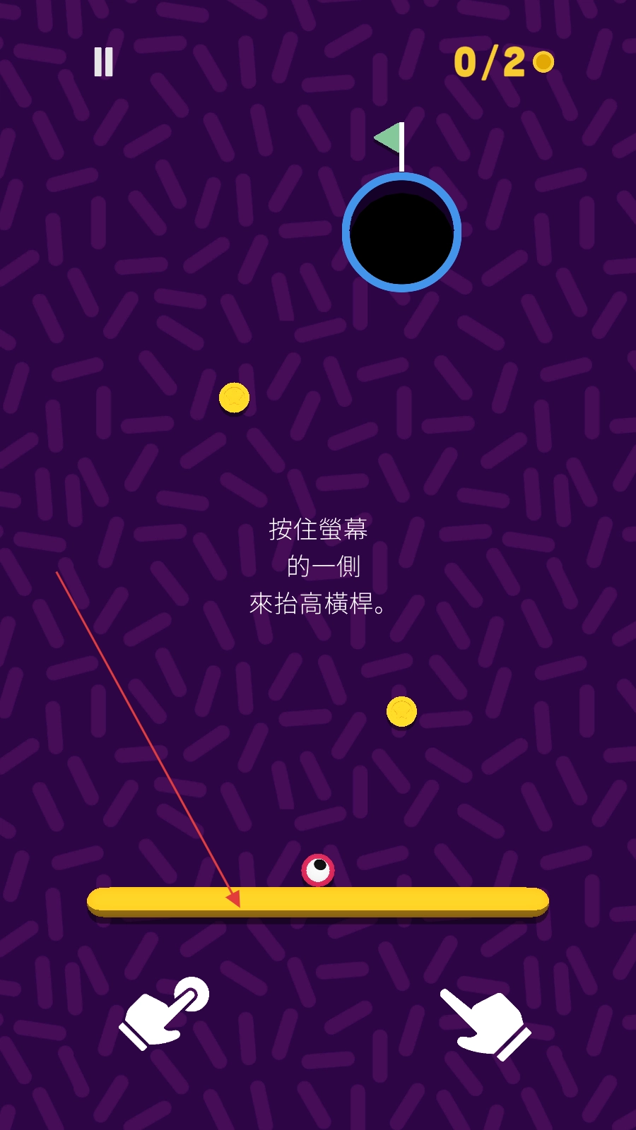 点击屏幕一侧来抬高横杆,引导小球收集金币,瞄准洞口。