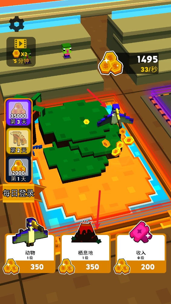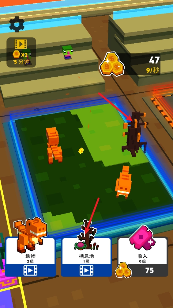我们还能通过添加更多恐龙或栖息地的方式,来提升点击所带来的收益。
