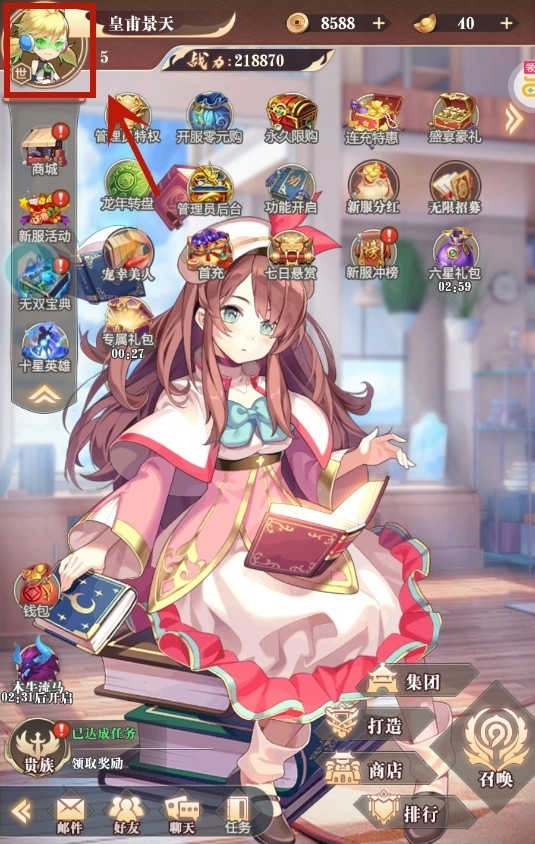 进入游戏后,首先在主城界面点击左上角的头像图标。