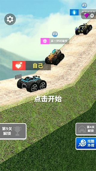 每个关卡都能获得相应奖励,你可以用这些奖励解锁更多酷炫的越野车和配件。