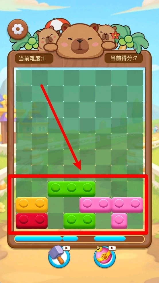 点击锤子道具能够清除掉不需要的方块,点击炸弹道具则可以刷新当前可供使用的积木组合。