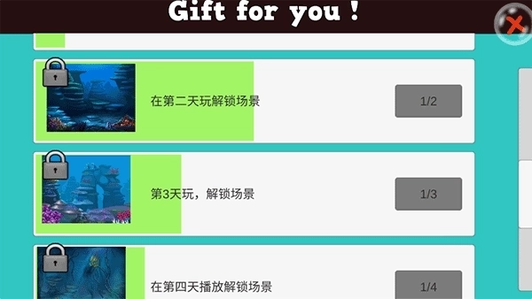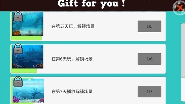 解锁新场景的条件是“无伤通关”——也就是全程没被大鱼咬到。要是中途被大鱼咬过,就算最终通关了,也无法解锁新场景。