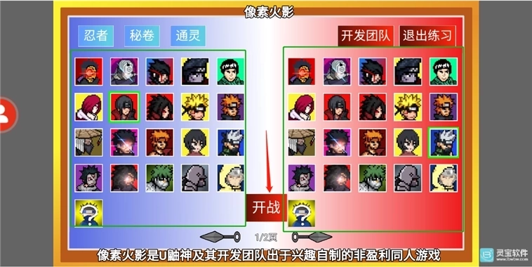 在对战练习环节,玩家能够在界面左右两侧点击自己想选的任务,点击下方的【开战】按钮就能启动练习模式。