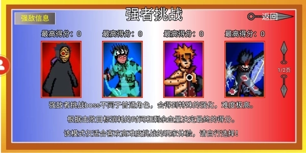 用细腻的像素画风重现火影经典名场面,无论是角色还是场景,都兼具复古韵味与热血质感。