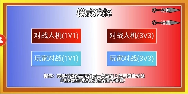 在备战模式下,玩家可选择四种对战类型,不过玩家之间的对战仅支持在同一台电脑上通过键盘进行。