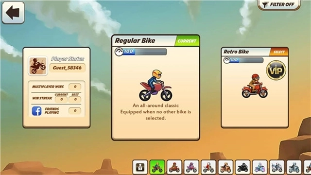 摩托车特技竞速赛是以摩托车为核心主题的竞速类游戏。在游戏里,玩家将化身摩托车特技车手,在各类复杂且充满变化的赛道上,去完成高难度的特技动作展示以及竞速闯关任务。不管是驾车飞跃陡峭的高坡、在空中完成翻转腾跃,还是在狭窄的赛道间灵活地穿梭行驶,每一项都十分考验玩家的反应快慢与操作能力。不仅如此,游戏还设置了单人挑战、多人竞技和自由训练等多种玩法模式,方便玩家依据自身的偏好来挑选不同的游戏方式。