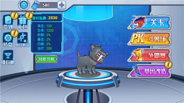打开变异狗大战这款游戏,你会发现这里包含了丰富多样的关卡,还有pk斗兽场、争霸赛等一系列模式玩法。