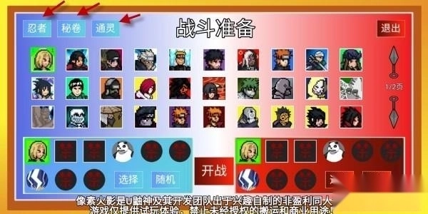 开战前需要选择你的忍者,还有秘卷和通灵。