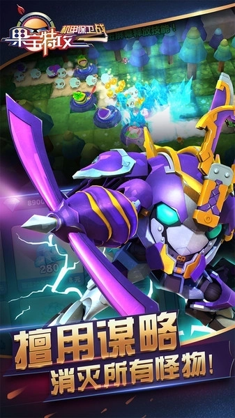 《果宝特攻机甲保卫战》是一款由国产人气动漫《果宝特攻4》IP改编的全3D塔防游戏。游戏在尊重原著的基础上,以传统塔防经典玩法为核心支撑,同时融入多种趣味玩法——除了炮塔养成、技能树等常规塔防系统外,还加入了RPG游戏中的机甲养成、战前部署与羁绊援护等外围元素,通过内容的丰富融合打造独特体验;更独创机甲飞行模式,力求塑造一个别具一格的塔防游戏世界。