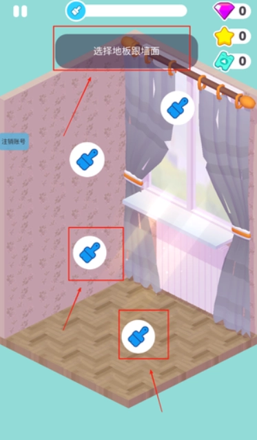点击刷子图标就能启动装修流程,建议先挑选地板和墙面,按照教程指引操作就行。
