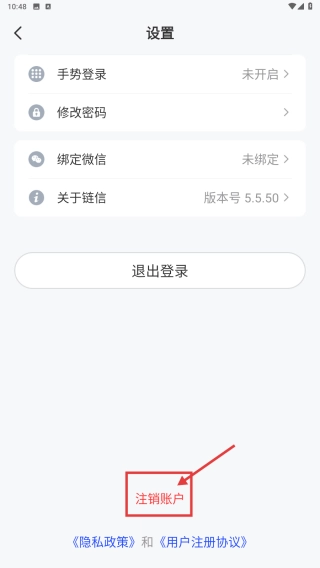 在设置界面中,点击“注销账户”按钮,查看相关的注销账户说明。
