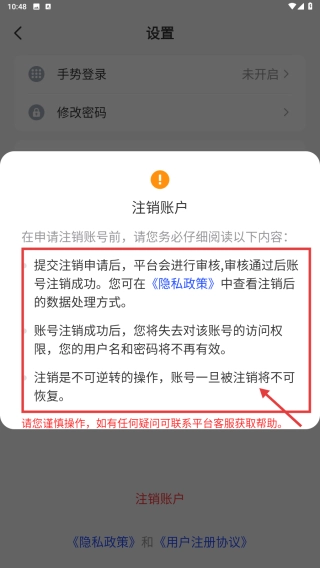在确认已了解账户注销的相关说明后,提交注销申请,从而完成账户注销的全部操作。