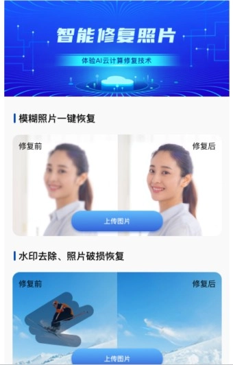 一键修复旧照片:借助独特算法,可快速识别旧照片里的瑕疵并自动修复,让画面重焕清晰生动的原貌。