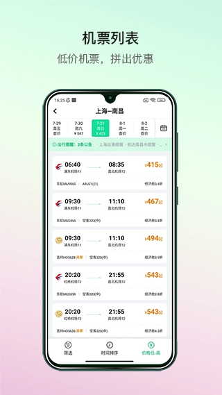 哪天的票价情况,都会及时提供,所需信息都能快速掌握。
