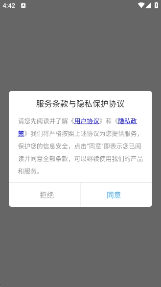 安装软件并打开,点击同意服务条款与隐私保护协议即可进入。