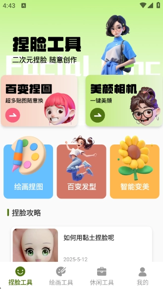 涵盖捏脸、绘画、休闲等多种工具和内容,满足多样化创意创作需求。