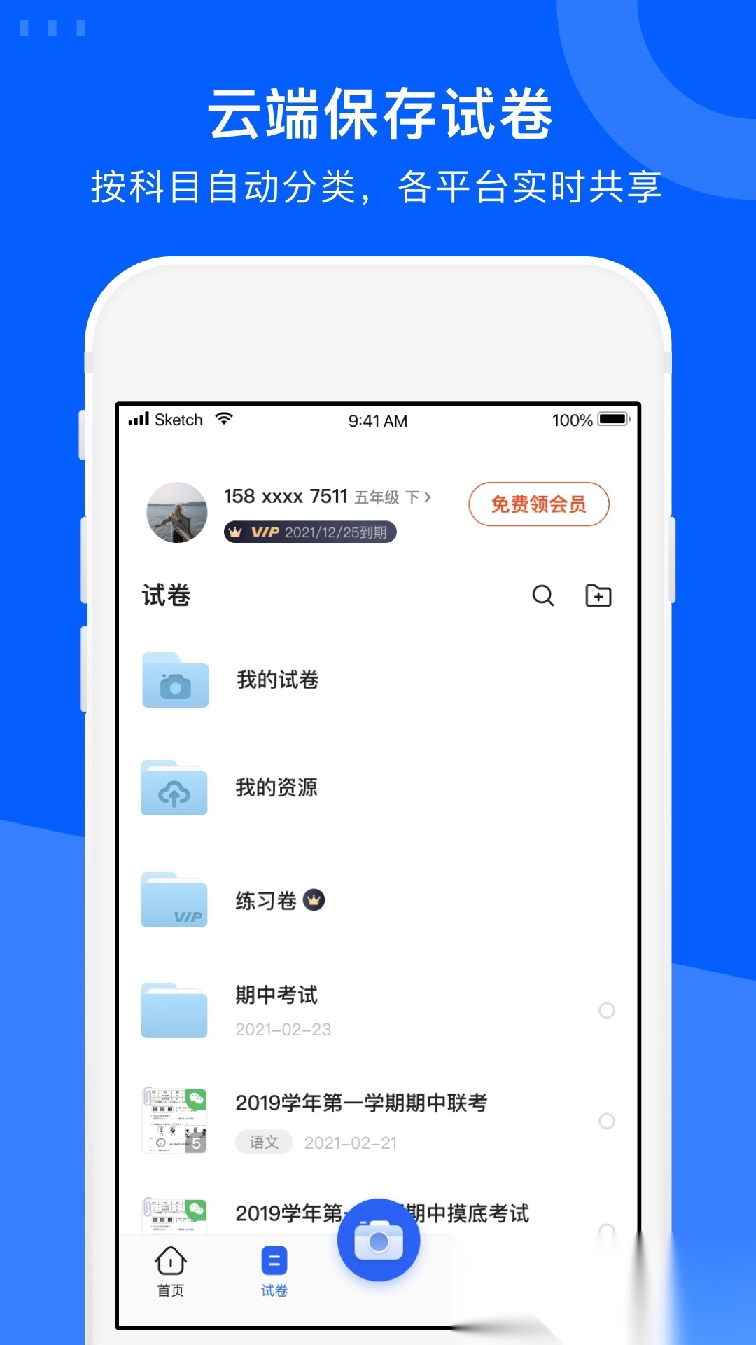 这是一款专注于试卷与错题管理的实用工具,还配备了专用的共享云盘。
