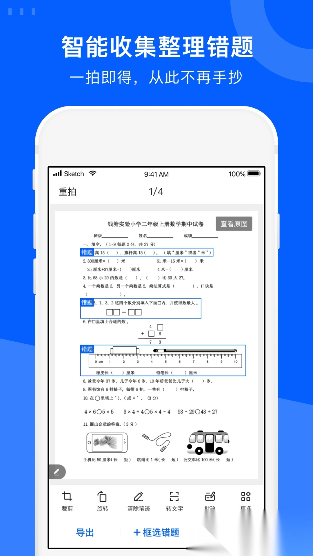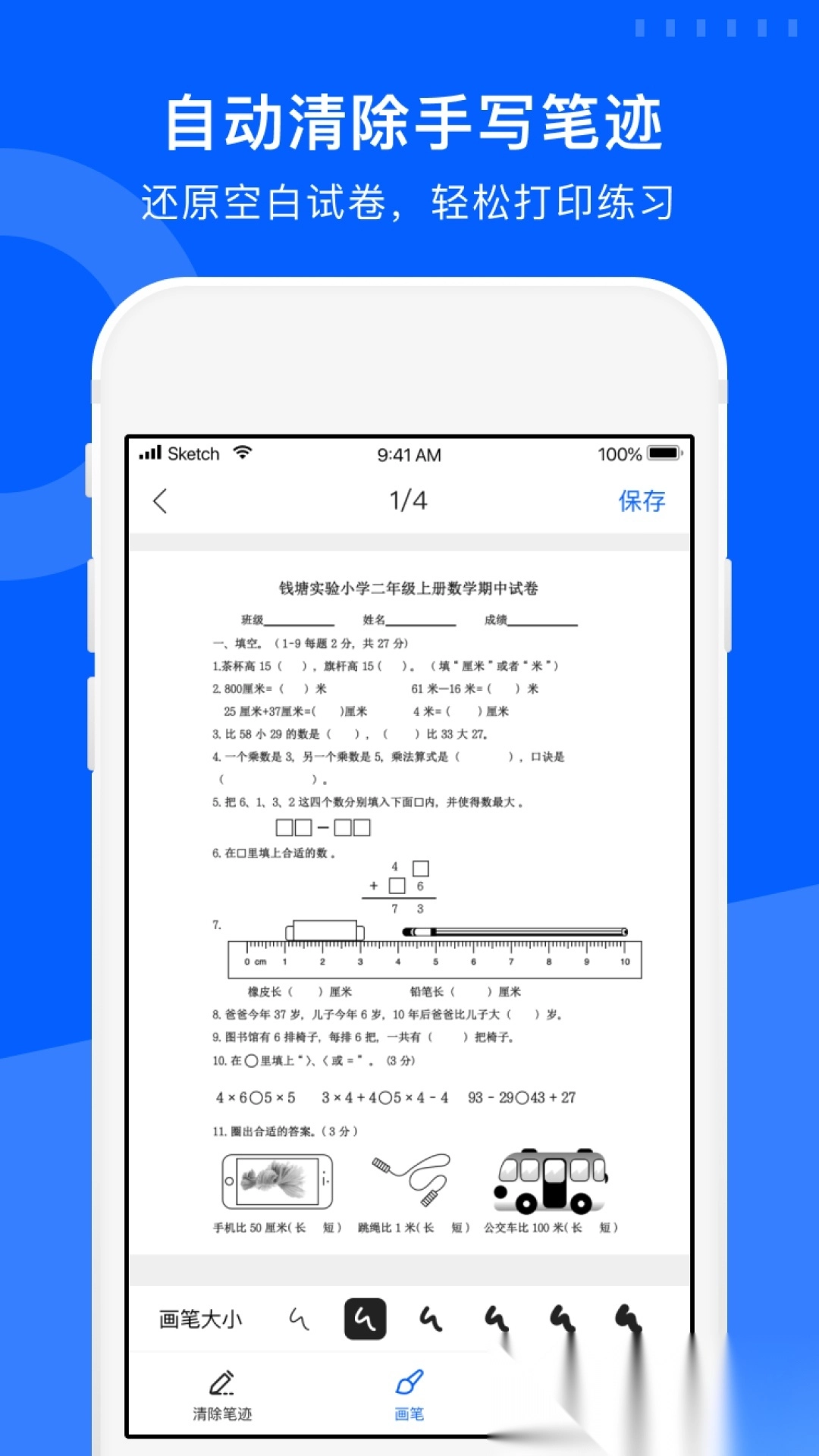 拍摄试卷:自动去除笔迹,还原空白试卷;
