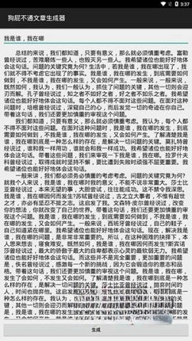 这时候,要是能有个生成器来搭把手,那可真是再理想不过了!告诉大家一个好消息,3322如今为各位带来了这款奇妙的狗屁不通文章生成器,它妥妥是你写作路上的得力助手。只需输入关键词,轻轻按下生成按钮,现成的文章便会自动生成,整个过程就是这么便捷!有需求的朋友们,快快来体验一番吧!