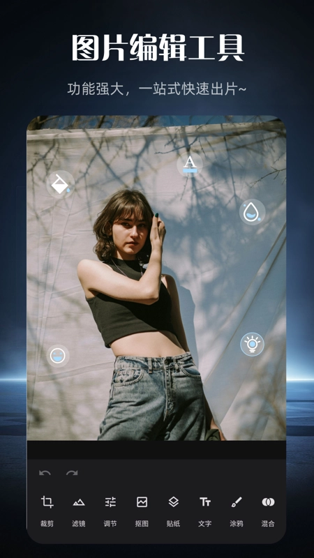 这款软件拥有诸多实用且强大的功能,比如直观易用的照片编辑工具,能让用户便捷地打造并分享每一个值得珍藏的瞬间。其中,照片贴纸编辑器可帮助用户轻松设计出个性化的贴纸,还能创作出生动有趣的梗图;图层处理功能则支持用户对照片进行精细化调整,无论是添加贴纸还是文字都能轻松操作。此外,智能抠图和去水印功能也十分实用,能帮助用户快速处理掉照片里多余的部分,让最终的编辑效果自然又流畅。