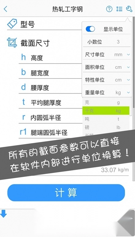 在计算界面,用户可自主选择显示或隐藏参数单位;