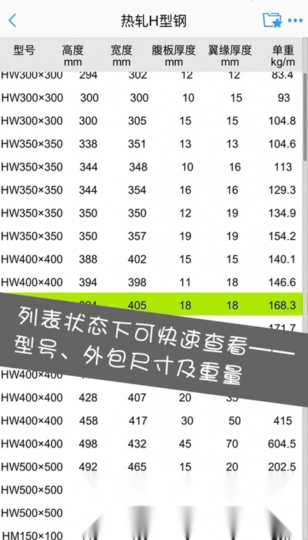 点击任一型材型号,即可浏览其全部详细数据;