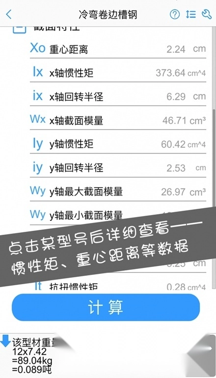专业计算功能涵盖型材重量、长细比以及惯性矩移轴等多项计算内容。