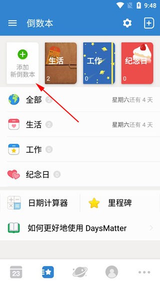 2、点击底部“倒数本”,可以添加和管理倒数本。