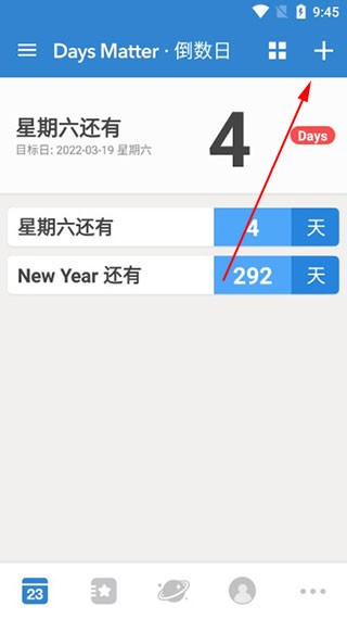 1、并打开day smatter,进入首页,点击右上角“+”可以添加倒数日。
