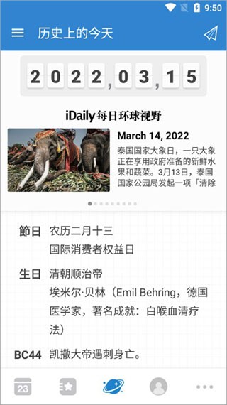 4、在历史上的今天里面可以看到历史上的节日、名人生日、重大事件等。