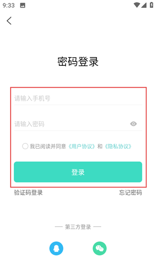 3、在密码登录页面,输入手机号和密码,勾选同意协议后点击登录即可。