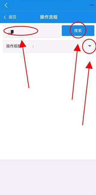 页面跳转完成后,在搜索框中输入关键词,接着点击“搜索”按钮,之后再点击向下的三角图标。