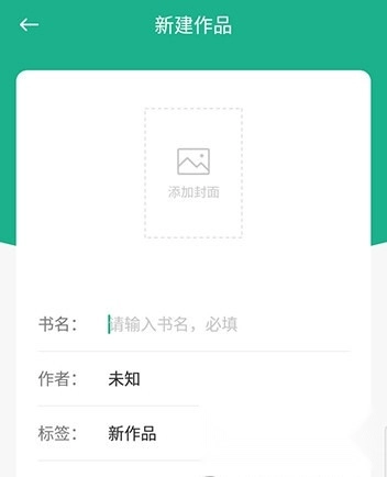 点击后即可创建新作品,依次添加封面、书名、作者信息与标签,完成后点击保存按钮,新作品就创建完成了。