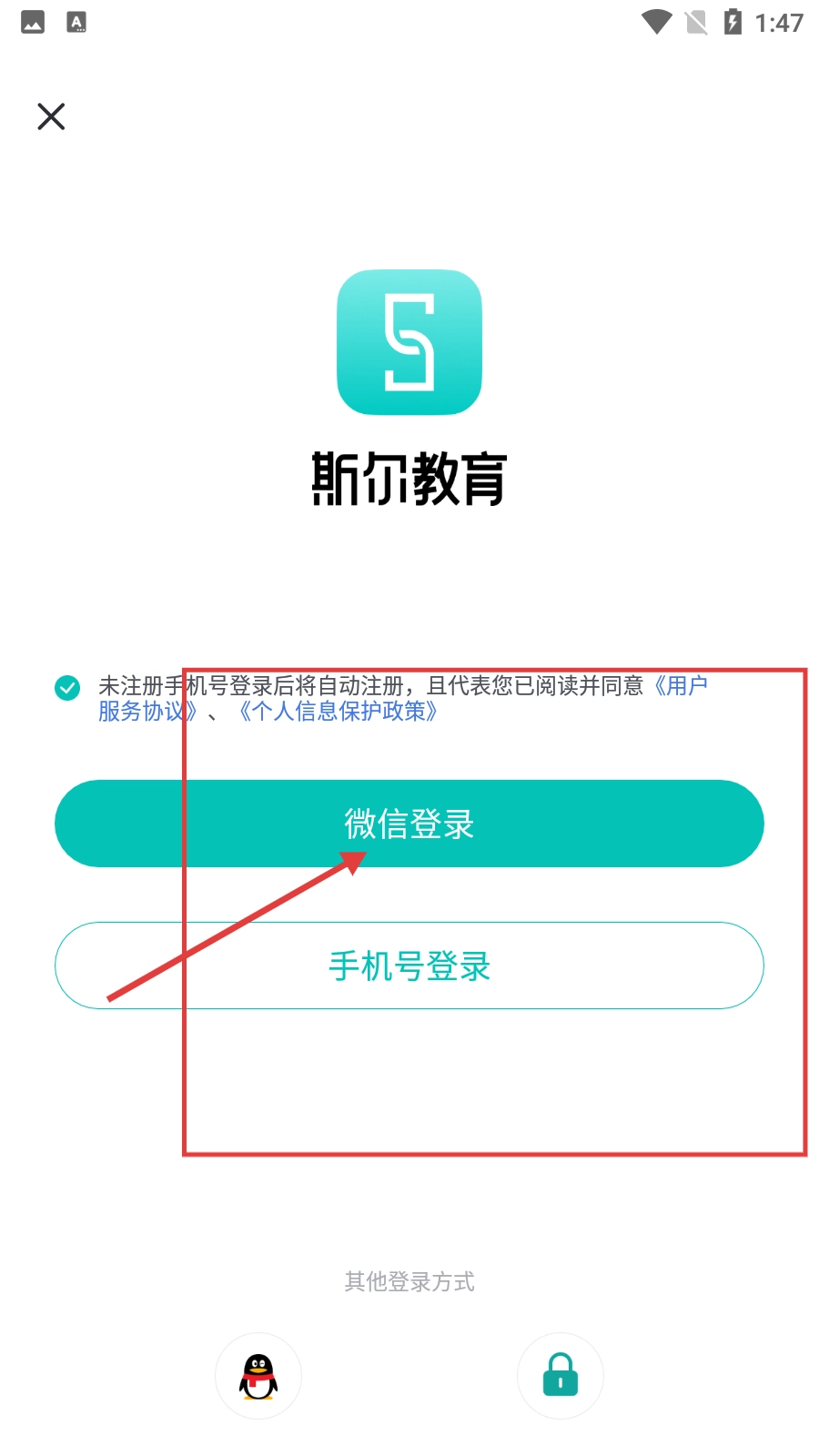登录界面支持微信登录与手机号登录两种途径,若使用未注册的手机号登录,系统会自动完成注册流程。