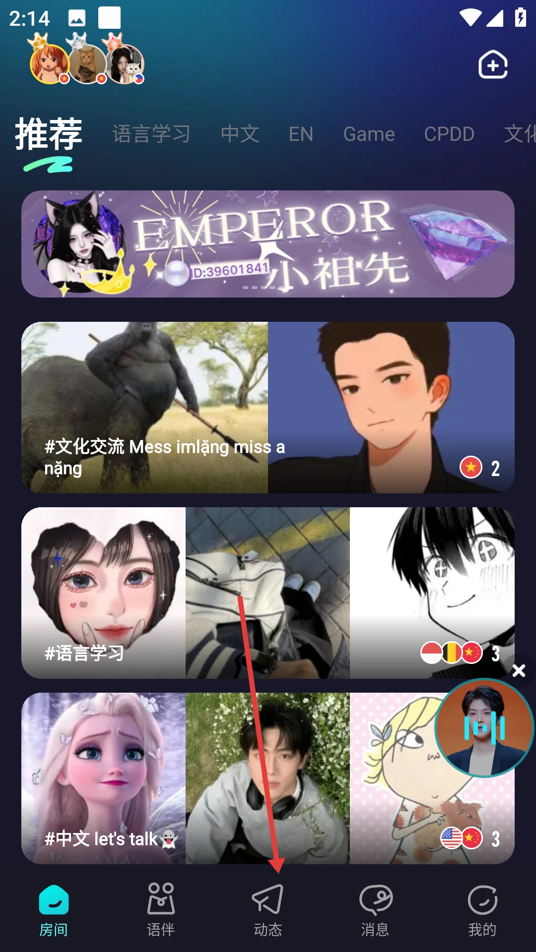 点击底部导航栏的【动态】选项,进入动态页面。