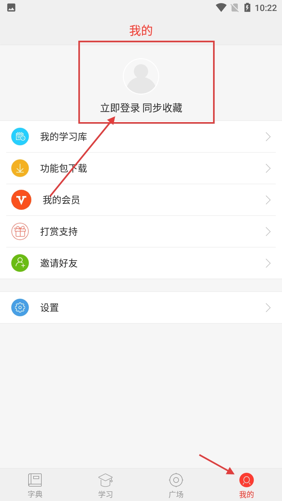 进入软件的【我的】界面后,点击【立即登录 同步收藏】区域,即可启动登录流程。