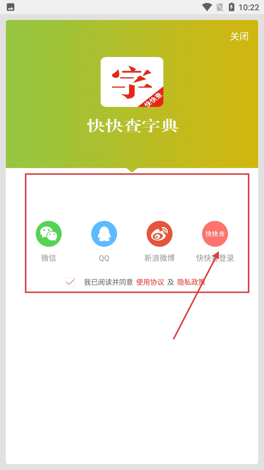 在登录选择界面,你可以选择【微信】【QQ】【新浪微博】或者【快快查登录】这些方式,选好之后勾选同意协议就能继续下一步了。