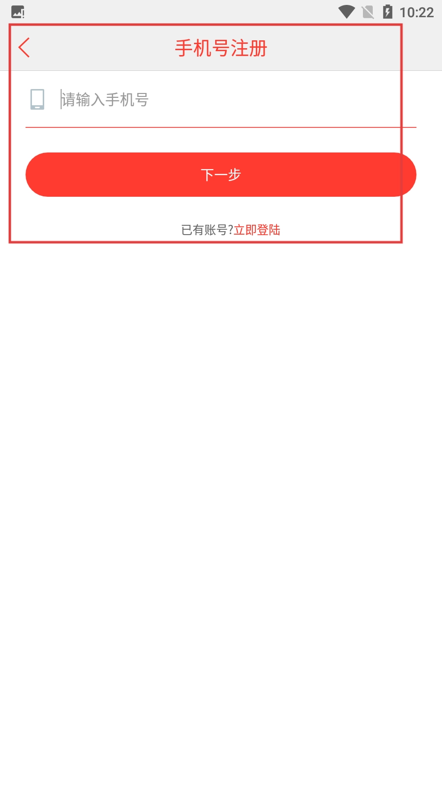 进入手机号注册界面,输入手机号并点击下一步,即可继续完成注册流程。