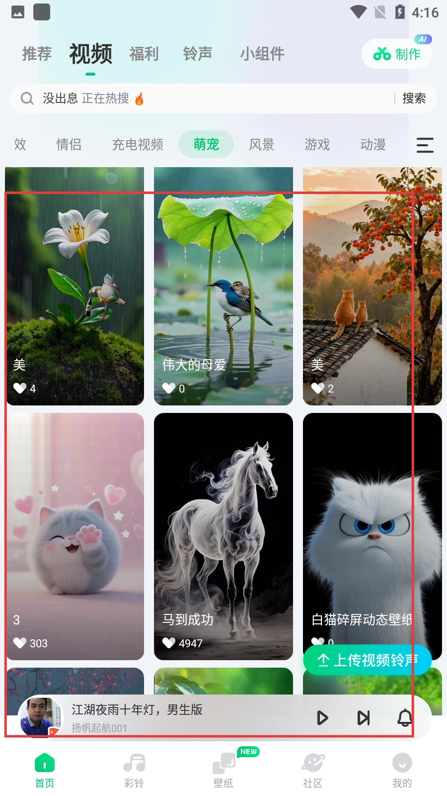 在萌宠视频列表页面,你可以浏览各种各样的萌宠相关视频,挑选自己感兴趣的视频来观看。