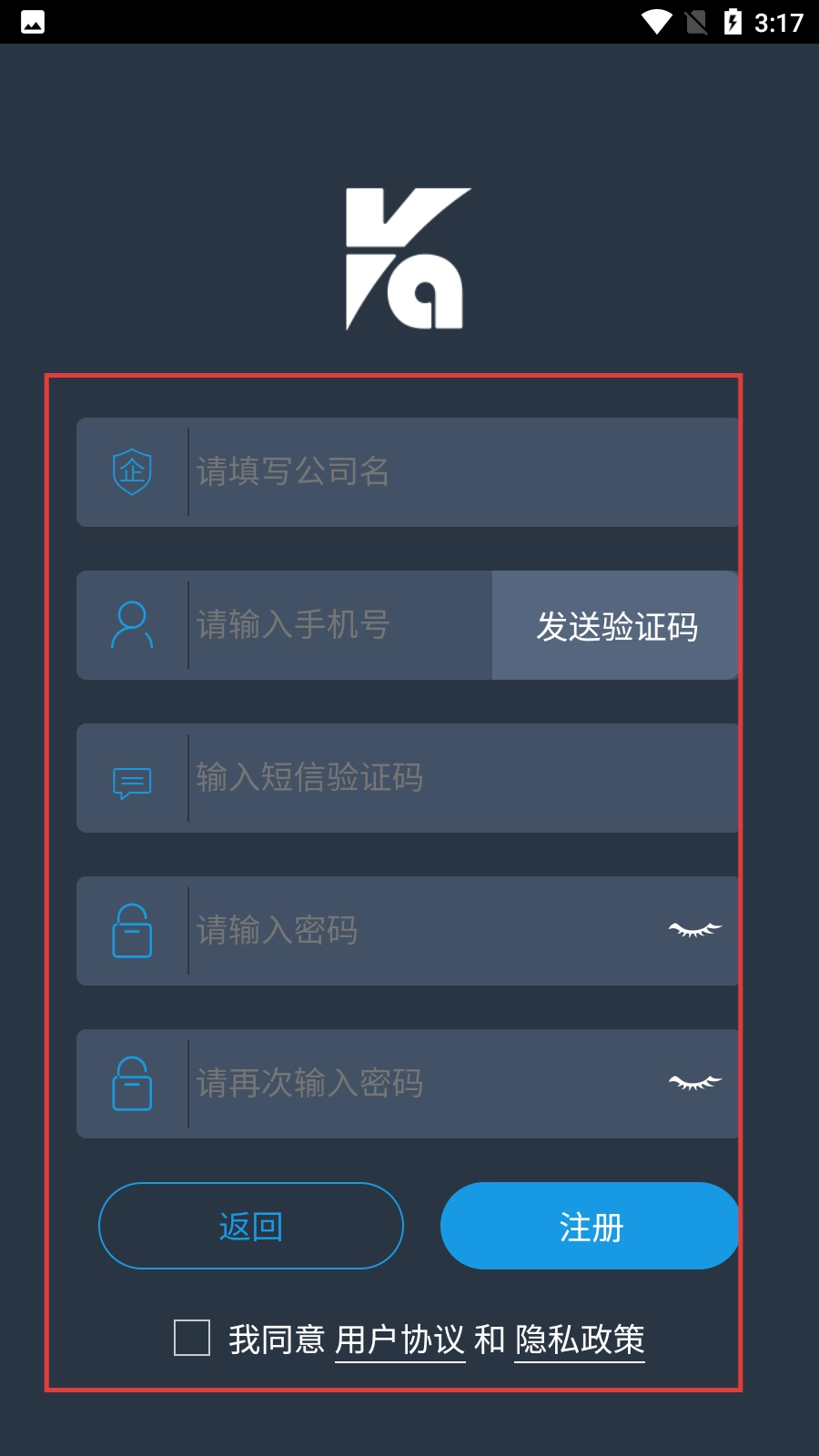 在注册页面,依次填写【公司名】与手机号,获取并输入验证码,设置好密码后点击【注册】按钮,即可完成账号注册流程。