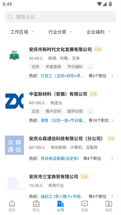 安庆诚聘是安庆地区超赞的头部招聘平台!它借助本土化资源整合与技术创新,打造了求职-招聘-培训全链条服务体系,切实传统招聘信息不对称的难题。