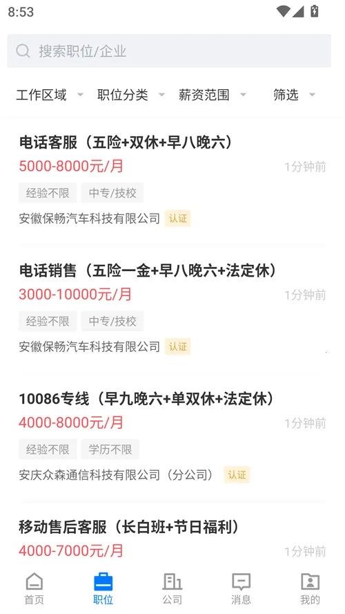 这个求职平台的特色服务相当丰富:AI系统会根据你的情况进行精准匹配,双向智能推荐功能更是精准度极高;平台还提供职业测评工具和简历置顶服务,帮助你更好地展示自己。筛选企业时,你可以通过多个维度进行选择,而且所有企业都经过严格认证,信息真实可靠。平台拥有完善的安全认证体系,能充分保障你的个人隐私安全。此外,它还与政府就业服务平台实现了数据打通,同步更新招聘信息和培训资源,同时为你提供行业动态资讯和职业发展指导建议。用这个平台来找工作,不仅过程轻松,结果也十分靠谱!