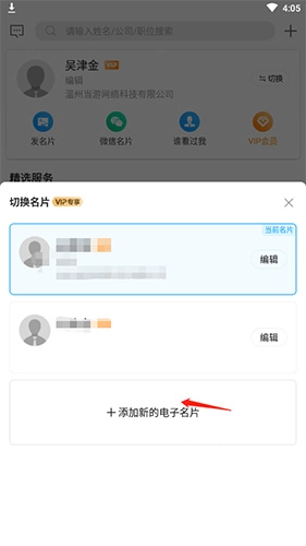 在下拉选项里,我们要点击【添加名片】这个选项来打开它。