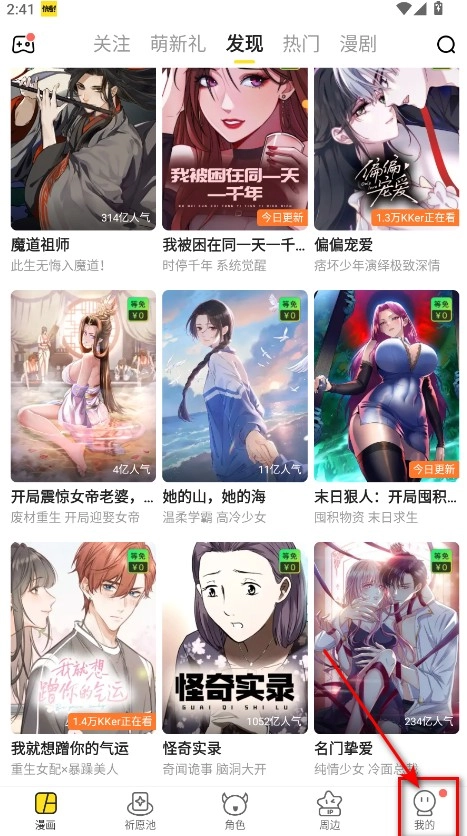打开快看漫画,进入到主页界面,点击底部的漫画选项